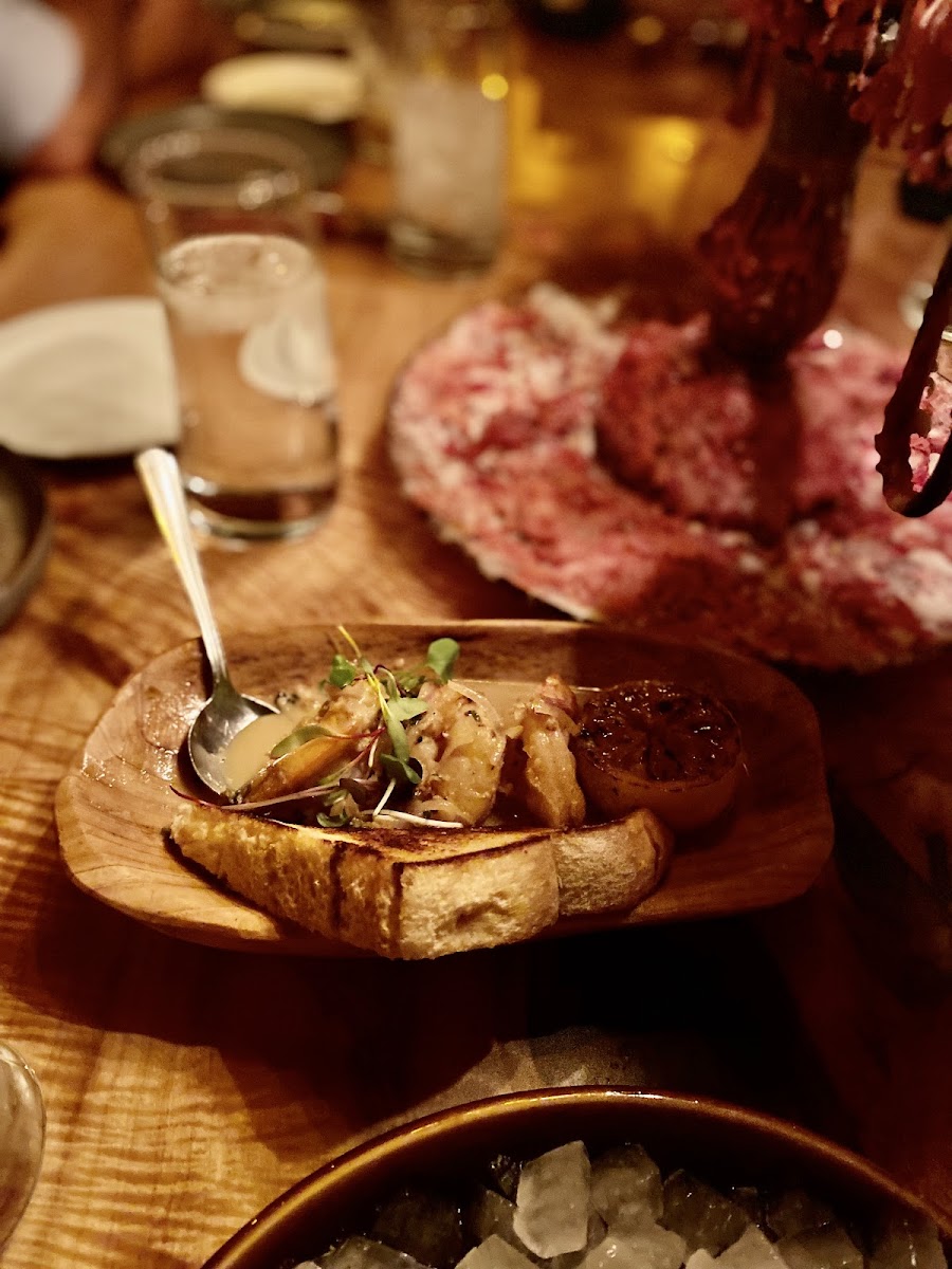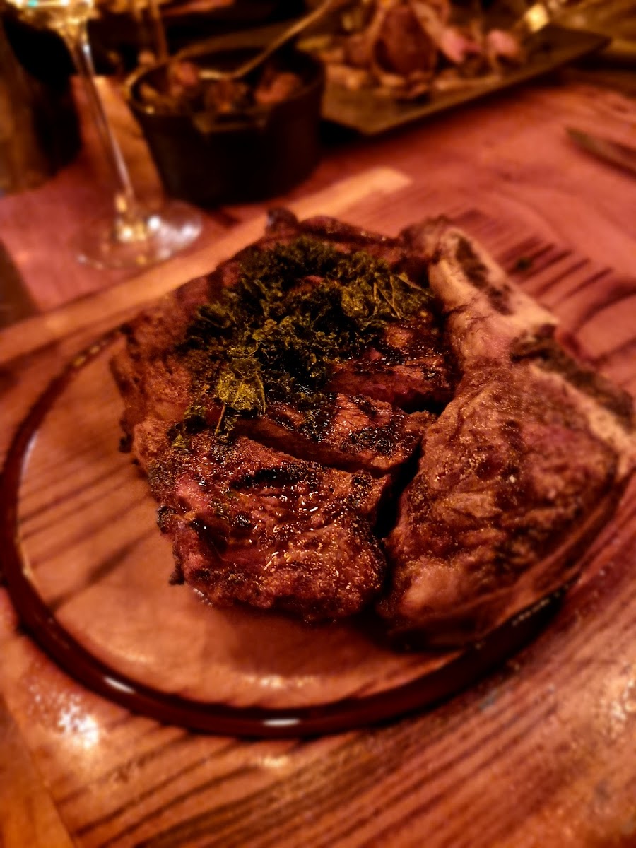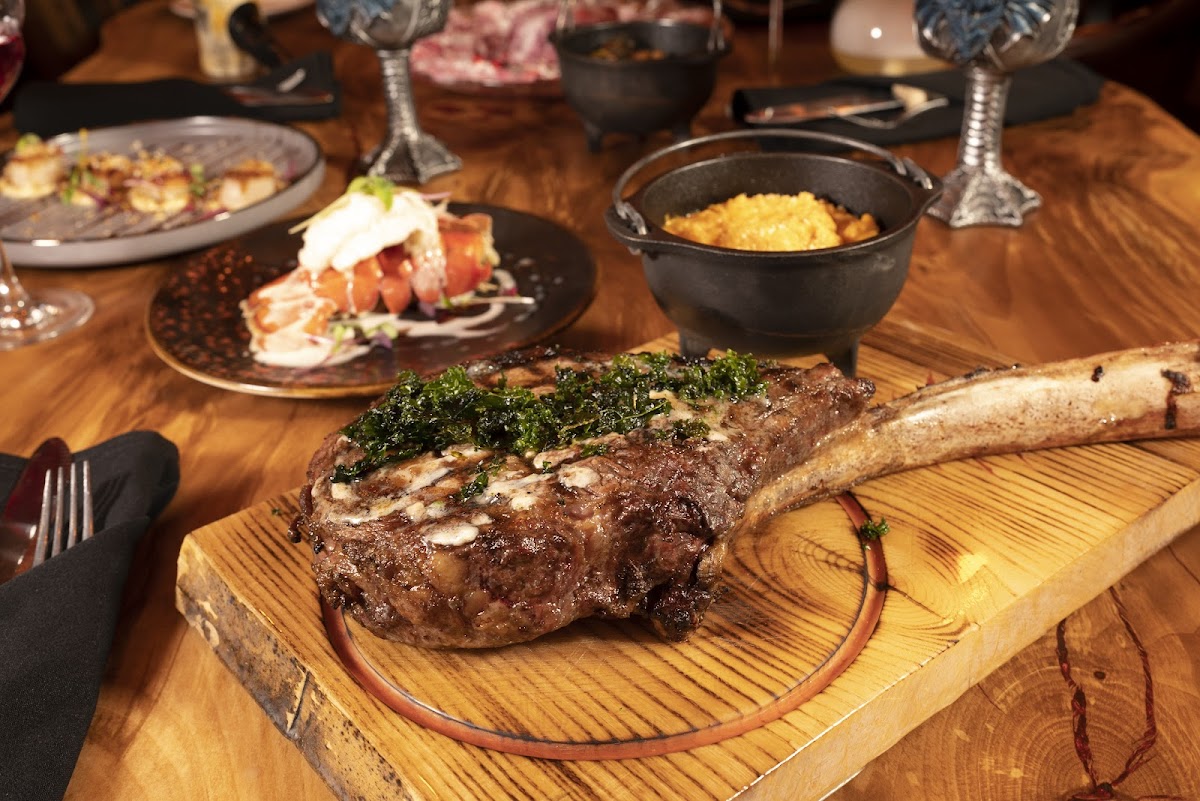 I thought the ambiance was cool. We were seated a a small table near the bathroom, right next to the bar and it had extremely poor lighting, table was very small, what made it worse was that it was next to the bar so I had constant traffic next to our table, our server had to move to the side every time someone was walking to the bathroom. Luckily they had an open table towards the back and it was MUCH better, table was larger, brighter lighting it was great so thank you! As for the food: Appetizers were definitely disappointing. The server said the scallops were on the larger side, they were definitely not. And flavor was very bland. Same for the shrimp scampi, no flavor unfortunately. At this point we were pretty scared, worried to be honest. Until the entree…. The entree was unbelievably delicious!!! We got the 50 oz. Tomahawk, yummy! Mac and cheese was some of the best I’ve had! And the lobster tails were delicious also! I would return, but skip the appetizers, with the generous side portions and steak, the appetizers really are not needed anyways. We did have drinks, two appetizers, multiple sides, bill was over $500 for two people. So very pricey, we thought maybe some complimentary bread would be fitting considering their pricing…a steakhouse without bread?!?! Overall good experience.