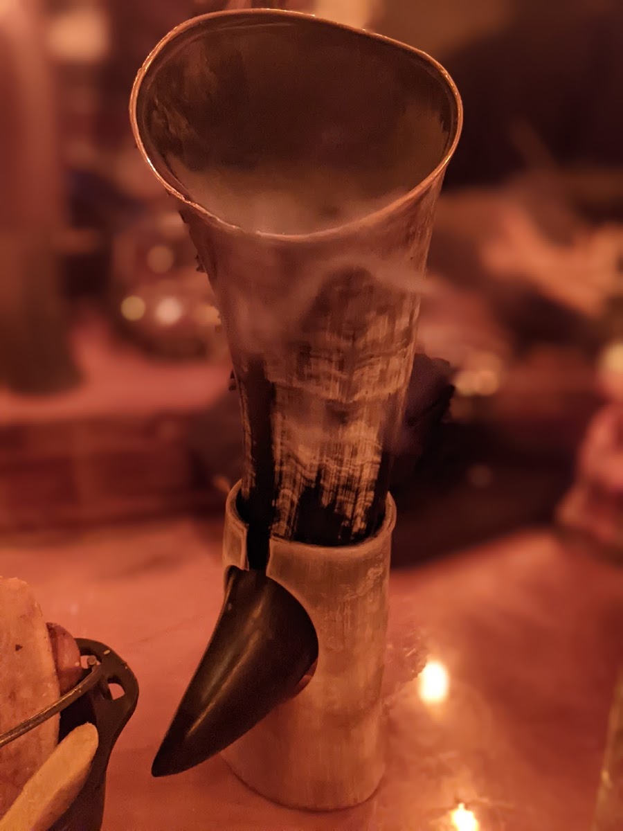 Come for the atmosphere and the novelty of midevil decore, themed drinks and big pieces of manly meat. Unfortunately we went all in with the tomahawk, but when it came out, it was a giant piece of fat with little to no meat. The meat we did manage to cut off was though. It was enough where even the manager and waiter agreed it was a bad cut and decided to remake the steak for us. We just asked for a filet minon instead. That steak was much better, perfectly cooked and had flavor, but not enough to be memorable. Service is top notch. We met both managers and waiters were all nice. Food was ok. Photos before and after dinner were fun. Oddly they had a live musician that was singing covers of 90s music that night.
